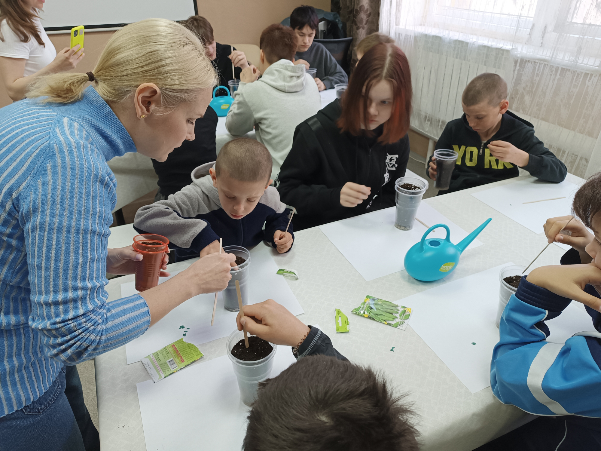 Это было последнее весенне занятие в учебном классе, следующее будет уже на площадке фермы, поэтому, особенно важно было закрыть вопрос с подготовкой посадочного материала. Ребята молодцы, справились! Семена посажены, без урожая не останемся.